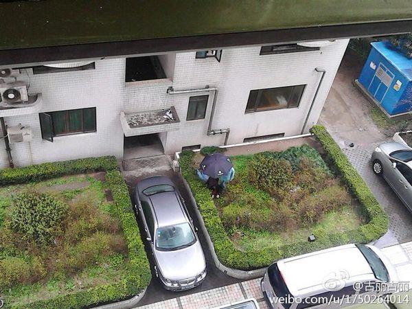 发生意外的是塘桥茂兴路仁恒广场小区,在网友拍摄的照片上可以看到,坠楼者躺在大楼前的绿化内,由于现场正在下雨,一旁人员在坠楼者上方撑起了雨伞。