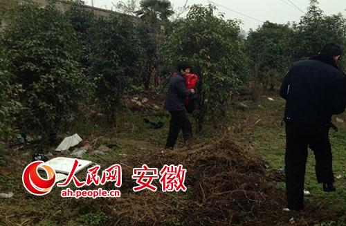 合肥市望湖派出所民警李秉瑜得知情况后赶到现场,沿着二环路寻找。在南二环同庆楼庐州府南侧的小树林发现两个老人,地上是一米见方的土坑,一个老人拿着铁锹挖坑,另一个抱着襁褓。