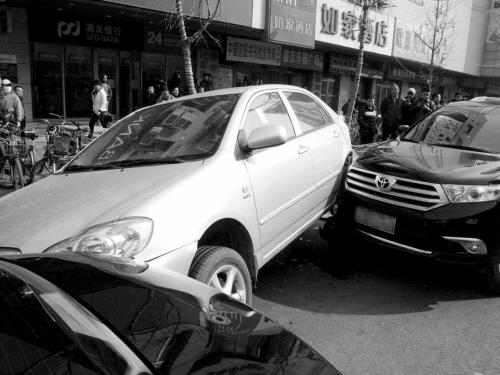 “我车咋这样了?!”昨天下午,一对夫妇拎着大包小裹出现在三好街时,被眼前的景象惊呆了:他们的轿车后轮悬空,被前后两车挤在中间。而此时,交警和前后两车车主正苦苦等待他们的出现。