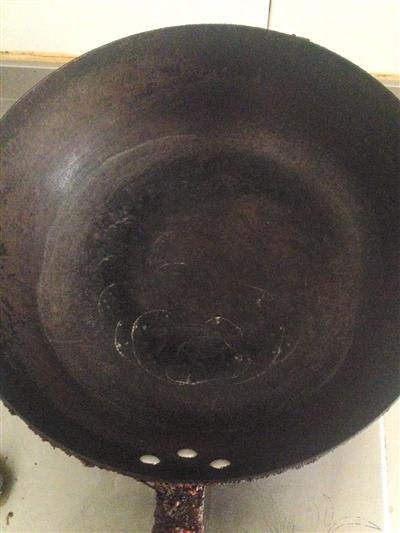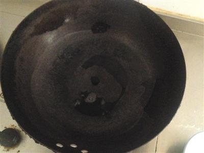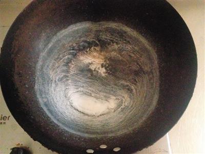 来自水龙头中的水烧干后,铁锅出现“白底”。