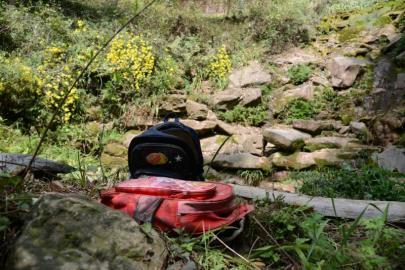 覃家兄弟俩的书包,仍遗留在遇害现场。华西都市报记者梁波 华西城市读本记者赵权军 张黎达州宣汉摄影报道