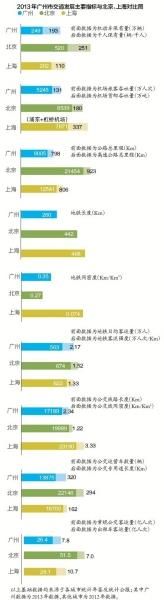 尽管如此,与北京、上海相比,广州交通发展主要指标还存在较大差距,在机场旅客吞吐量、公路总里程、地铁长度、公交线路长度等方面,均弱于京沪。