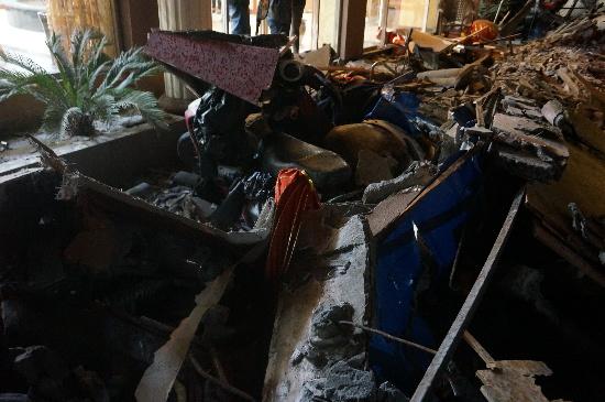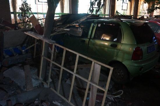 “我当时正在打牌,忽然听到轰隆隆的几声,大家都以为是地震了,跑出来一看,门口全是散落的钢筋砖头,我那辆停在路边的帕萨特车头部分都被埋了,仔细一看,门口的其他车也都遭得差不多了”,事发时正在茶楼打牌的陈先生告诉记者。