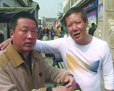 徐燕飞(右)与三轮车夫徐锦来。图由淮安区电视台提供