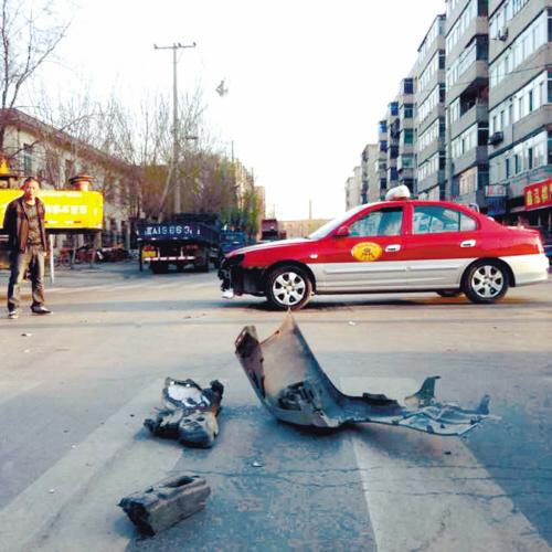 4月7日16时许,铁西区壮工街与重工小十一路交会处发生一起车祸。由于路口没有交通信号灯,一辆由西向东行驶的出租车与一辆由南向北行驶的吉普车相撞,两车左侧保险杠均脱落。吉普被撞冲出二三十米远后突然爆胎,车头随即调转冲向人行道,一名骑自行车的中年女子连人带车被顶起后摔倒。伤者随后被送往沈阳五院,经抢救无生命危险。经事故责任鉴定,出租车负全责。