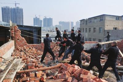 据了解,在当天的拆除行动中,5个执法小组共拆除违法建设24处,总面积达3000余平方米。(记者杨彬实习生刘晶文/图)