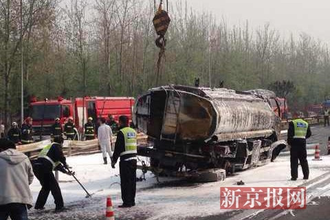 京开高速黄村段一油罐车肇事燃烧(组图)