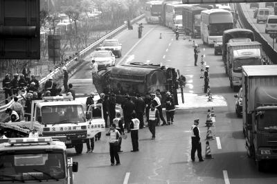 昨天中午12点25分,大兴区京开高速进京方向主路黄村路口北500米处,一载重10吨的油罐车侧翻后起火,车内2人死亡。