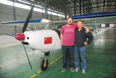 华西都市报记者昨日在北川山东工业园见到了该飞机驾驶员——55岁的美国乔治·海因茨飞机制造(四川)公司董事长陈伟。据介绍,该飞机被称作“空中悍马”,翼展9.1米、身高2.6米、长6.7米、空重350公斤,起飞着陆距离不超过50米,能使用汽油。