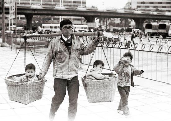挑着孩子回家 羊城晚报记者 叶健强 摄