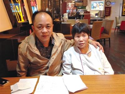 59岁的朱冬莲(右)和餐厅老板徐传彬。得知朱冬莲被拐卖后,徐传彬帮她找到家人。摄影/新京报记者 林野