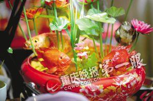 ■谢忠贵制作的金鱼标本,栩栩如生。