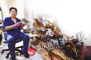 谢忠贵每天上午在动物园上班,下班后回到家里,就会开始倒腾动物标本。