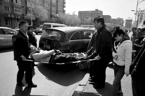 轿车与电动车路上别住 骑行人腿被挤压受伤(图)