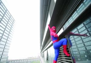 蜘蛛侠徒手攀爬高楼,还摆出吐丝、贴壁等各种造型。 本组图片由网友提供