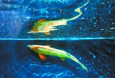 下午两点左右,记者在该馆看到,工作人员用塑料桶将这条中华鲟从暂养池取出,移至中华鲟饲养池饲养。只见它遍体金黄,体长约0.9米。放入饲养池后,也许是认生,它径直游到水底,然后趴在水底一动不动。饲养池内生活着10余条中华鲟和一条俄罗斯鲟。从外表看,它除了颜色与中华鲟(黑色或灰色)不同,嘴巴也比中华鲟尖而长。其尖嘴与俄罗斯鲟(黑中带黄)倒有几分相似。