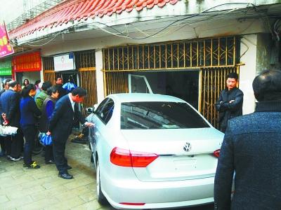轿车将诊所大门撞坏。记者杨涛 摄