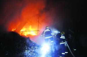 此时,自发组织救火的数十位群众,已将废品站附近被引燃的一栋房屋扑灭。不过,废品站内存放着的废弃纸壳和旧轮胎数量超过6吨,大火的燃烧势头依旧很旺,对周围数10户人家仍有很大的威胁。