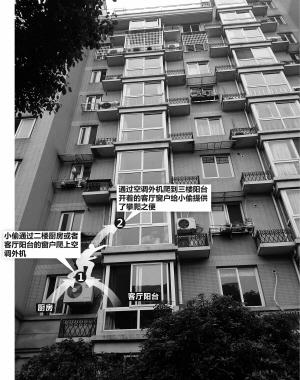 踩着空调外机往上爬的