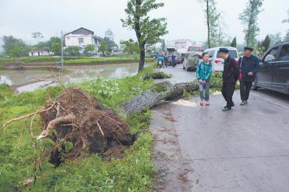 在通往大安镇的道路上,摆满了被吹断的树枝,有的树甚至被连根拔起。据了解,此次暴雨冰雹袭击中,还有石笋、悦来、恒升等乡镇受灾严重。