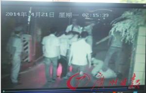 小区监控记录了几名男子当着警察面暴打值班保安过程。