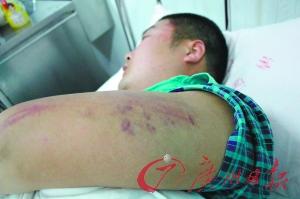 昨日,经过救治,邱二鹏已经转到普通病房。“头还很晕、全身酸痛、深呼吸时肺部会痛。”邱二鹏说,经检查,他的肺部有较为严重的瘀伤,脑部有瘀血需要留院查看。