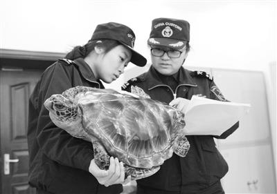 哈尔滨海关查获一只海龟标本 体长达半米(图)
