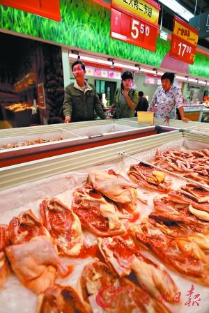 目前市场上的冰鲜鸡和冻鸡并非市民的最爱。 记者顾展旭摄