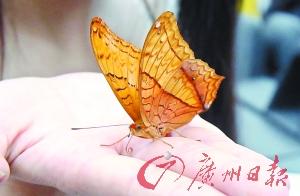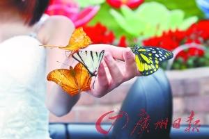 市民跟蝴蝶合影。记者 曹景荣 摄
