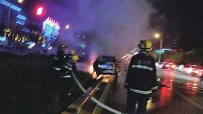 据目击者介绍,这辆车由南向北沿丽景街行驶到满春家园门口路段时,不知什么原因就冲进了路中的隔离绿化带,几乎同一时间车辆右后轮胎部位起火。