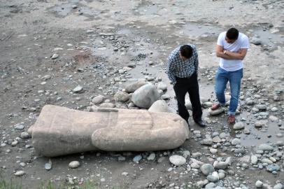 24日,都江堰河道内发现一尊长2.1米的石像。 专家表示,石像着汉代服饰,应该是汉代雕刻制成。