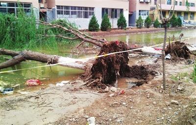 被风刮倒的大柳树。记者 魏巍 摄