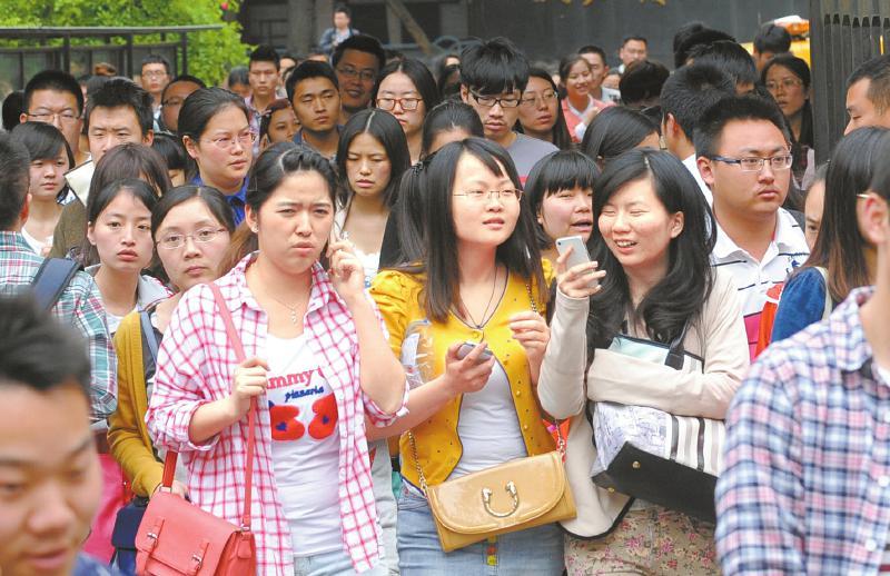 4月27日,四川省2014年上半年公务员考试,考生走出考场。