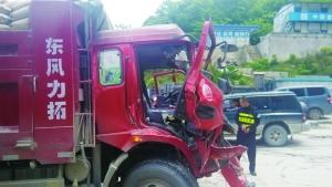 昨日,一辆运输水泥的卡车在中天未来方舟工地附近,与一辆混凝土搅拌车发生追尾,两名卡车司机被困驾驶室。