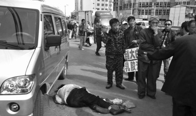 昨日下午2时许,一名喝醉酒的男子躺在沈阳宁官劳务市场外面的马路上,后被送往医院洗胃。读者供图