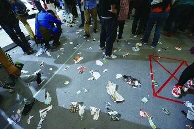 现场 人潮过去 纸屑零食遍地