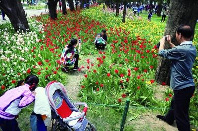 北京中山公园花展:一个月2000株郁金香遭踩(图)