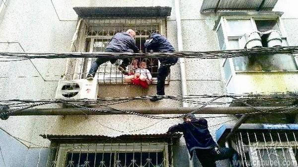 随后,另外两名安保队员朱小双、吴森贵也依次通过水管,爬上了二楼,分别站在空调和防盗网上。商量后杨志强决定由他负责扒开防盗网,朱小双、吴森贵则分别从下边顶托男孩的双腿。这样的办法生效了:杨志强用双手使劲扒开防盗网的铁条后,小男孩的双腿被顶出,顺利获救。