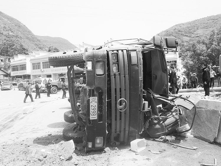 4月28日上午11时许,几声巨响扰乱了整个十堰郧西县上津镇刘家湾村。一辆满载水泥的重型罐式货车在该村二组刘家湾服务社门前(郧西往上津方向)发生侧翻,正巧压住一辆对向行驶的正三轮摩托车,致三轮车上6人全部遇难。