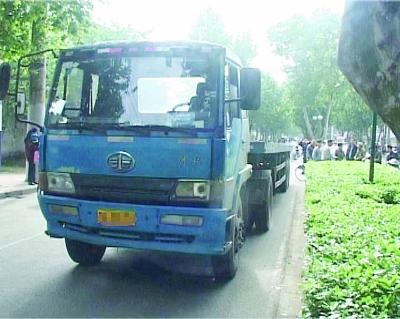平板货车路口拐弯带倒三人 两人伤势过重身亡(图)