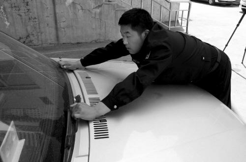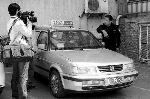 在交警支队和平一大队的院内,沈阳晚报、沈阳网记者看到了这辆只剩下一个雨刷器的出租车,该车的顶灯上面印的公司名称和车门上的公司名称竟然是不一样的。据翟某交代,这辆车是他从网上购买的。