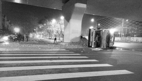 记者赶到现场时,奥迪车已经被拖车拉走,而太脱拉仍在路边侧翻着。太脱拉的前脸已经被撞碎,在其旁边散落着大量的沙土。据报料人刘先生介绍,凌晨2点左右,他正好开车路过。“当时警方正在现场处理事故,听旁边围观的人讲,当两车行驶到中山路与东北路交会处时,由于奥迪车车速很快,太脱拉在躲闪时发生侧翻,直接撞到了桥墩上。 ”刘先生表示,太脱拉司机受了点伤。奥迪车上无人受伤。
