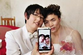 小伙为免岳父母顾虑穿上婚纱“嫁给”女方(图)