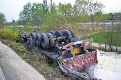 京藏高速一半挂车侧翻 车辆四脚朝天1人身亡(图)