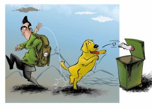 “狗捡垃圾”,这则黑色幽默让人沉思和汗颜:连狗都知道河里有垃圾不好,作为人,怎么就不能把垃圾随身带走?提高国民素质,加强国民教育,到底还该加强什么?(文\刘庆传 图\曹 一)