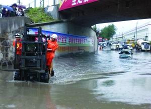 消防人员现场调来一辆车身较高的叉车,搭乘叉车至被困面包车旁,将被困人员救出,随后又将两辆被困车推至无积水路面。当天早上,消防中队共救援两辆被困车辆,并疏散15名群众。 (杨礼 黄宝华)