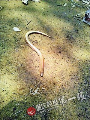 “我是在巡山的时候发现的,当时以为是条蛇。”缙云山国家级自然保护区管理局职工王二志告诉记者,4月17日下午三四点钟他在缙云保护站附近巡山时,在树林的草丛中发现了一条方形的蛇(如图),觉得很稀奇,“它身上是金色的,泛着白光,身体是长方形,我从来没见过。”