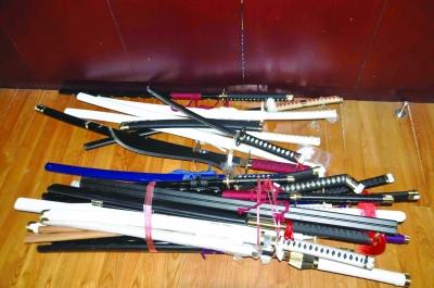 警方依法收缴了21把日式管制刀具。