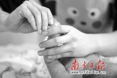 截至4月30日,东莞已受理552份“单独二孩”申请。图为一护士在正在给婴儿按摩。胡珂 马强 摄