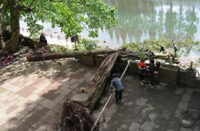 柳江古镇上的“夫妻树 ”被风吹倒。